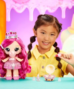 Welcome to Yummiland, where our brave Yummis team up to protect their incredible, edible city with magical lip gloss superpowers! Join them on their journey by creating your own real lip gloss included with your Yummiland doll and Num Nom pet. Each doll also features removable fashion, accessories, and a matching comb for styling their hair!