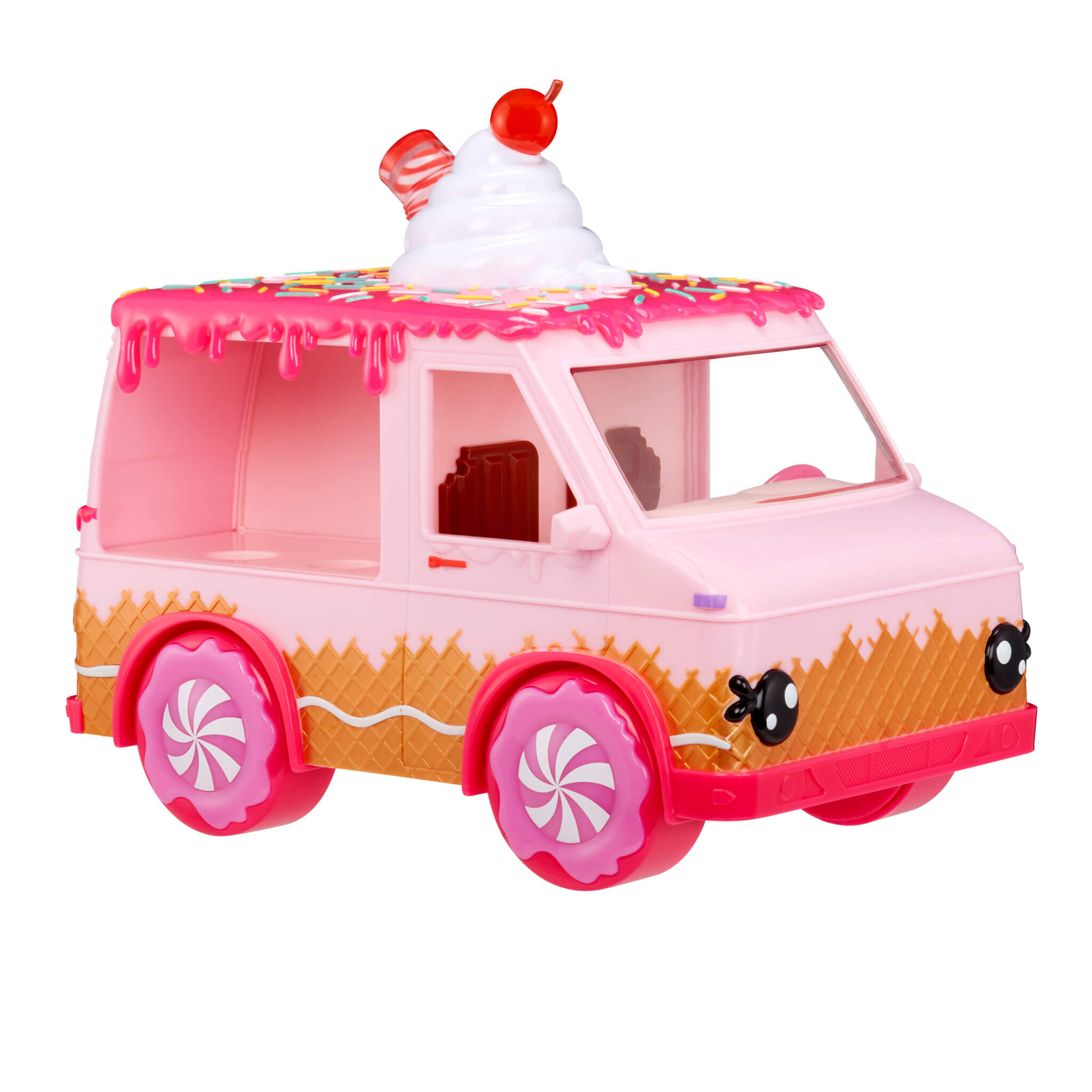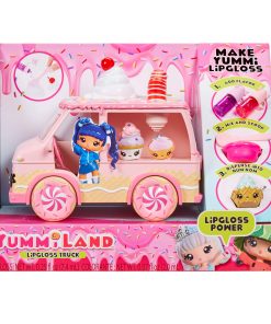 Play along with the Yummiland Lip Gloss Truck that includes everything you need to create your very own lip gloss! Mix your custom gloss right inside your truck’s whipped cream top, then place it in the straw to dispense right into your Num Nom container. Your small Yummiland dolls fit in the front seat for even more Yummiland play! Yummiland Dolls sold separately.