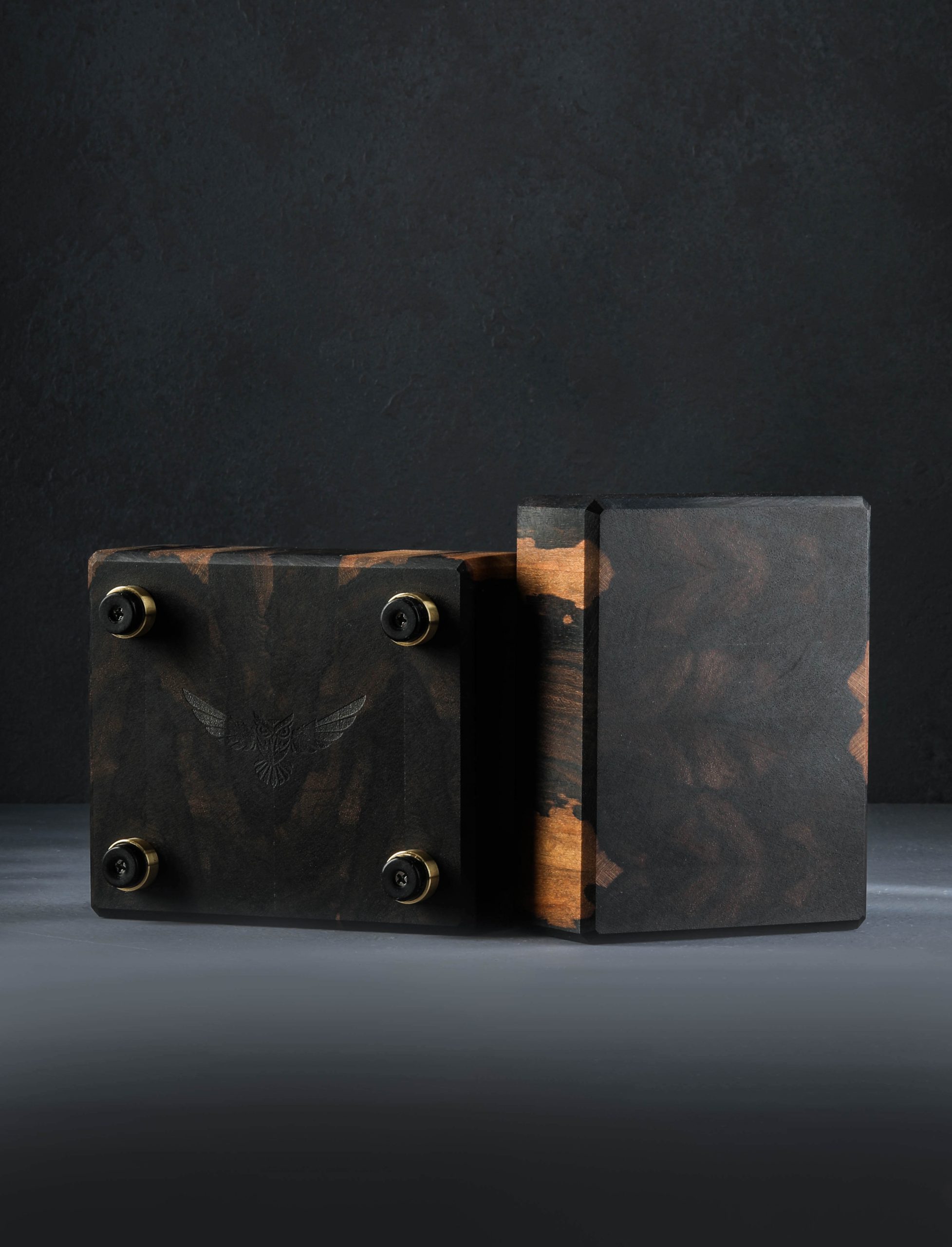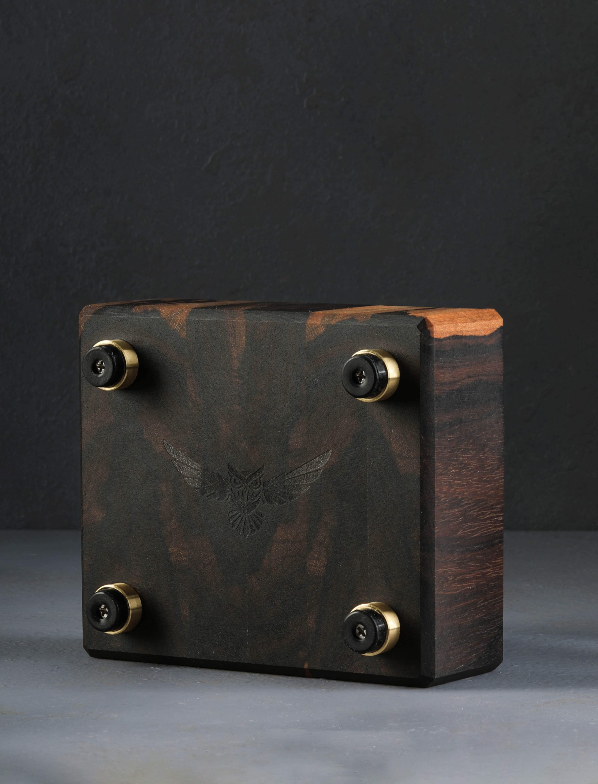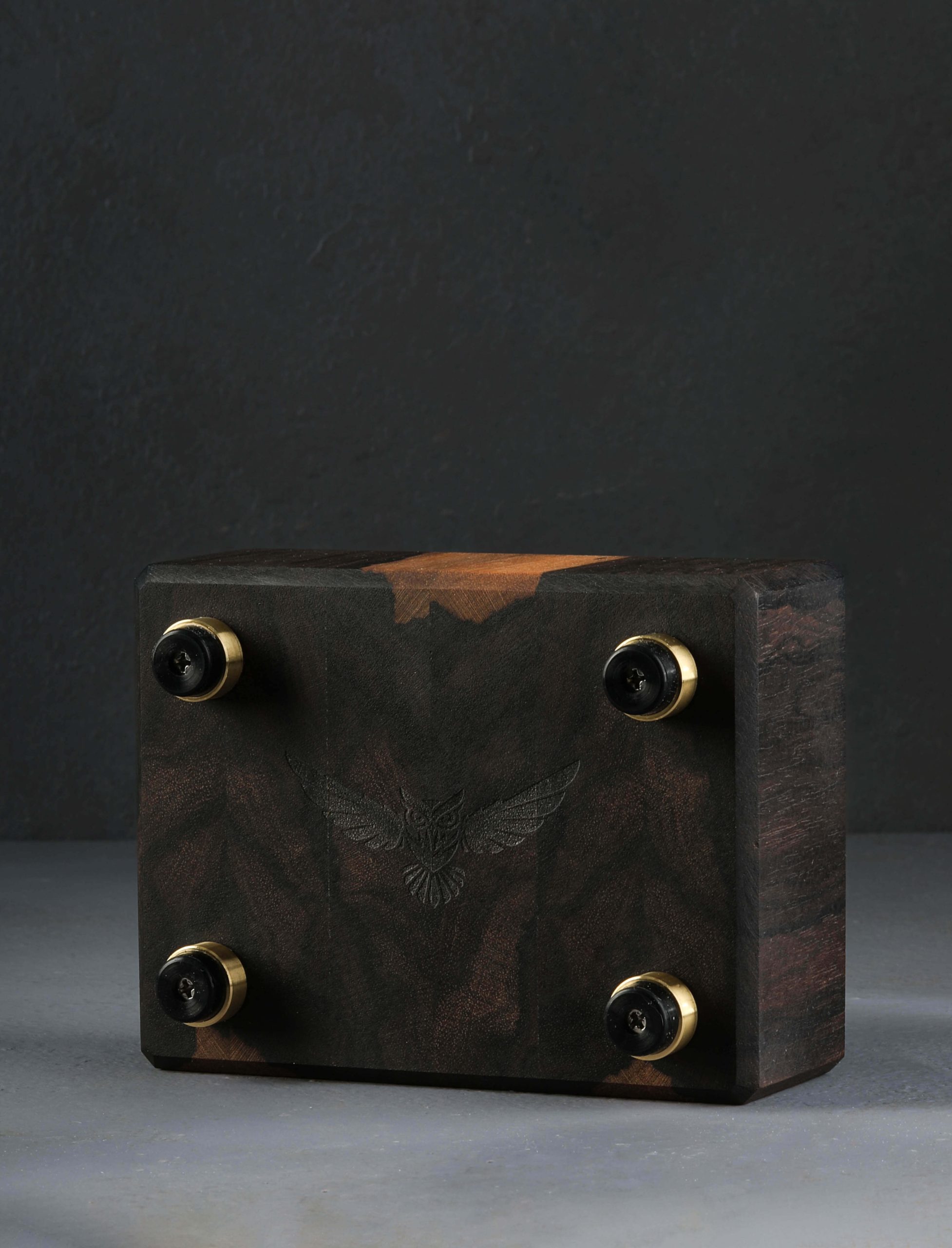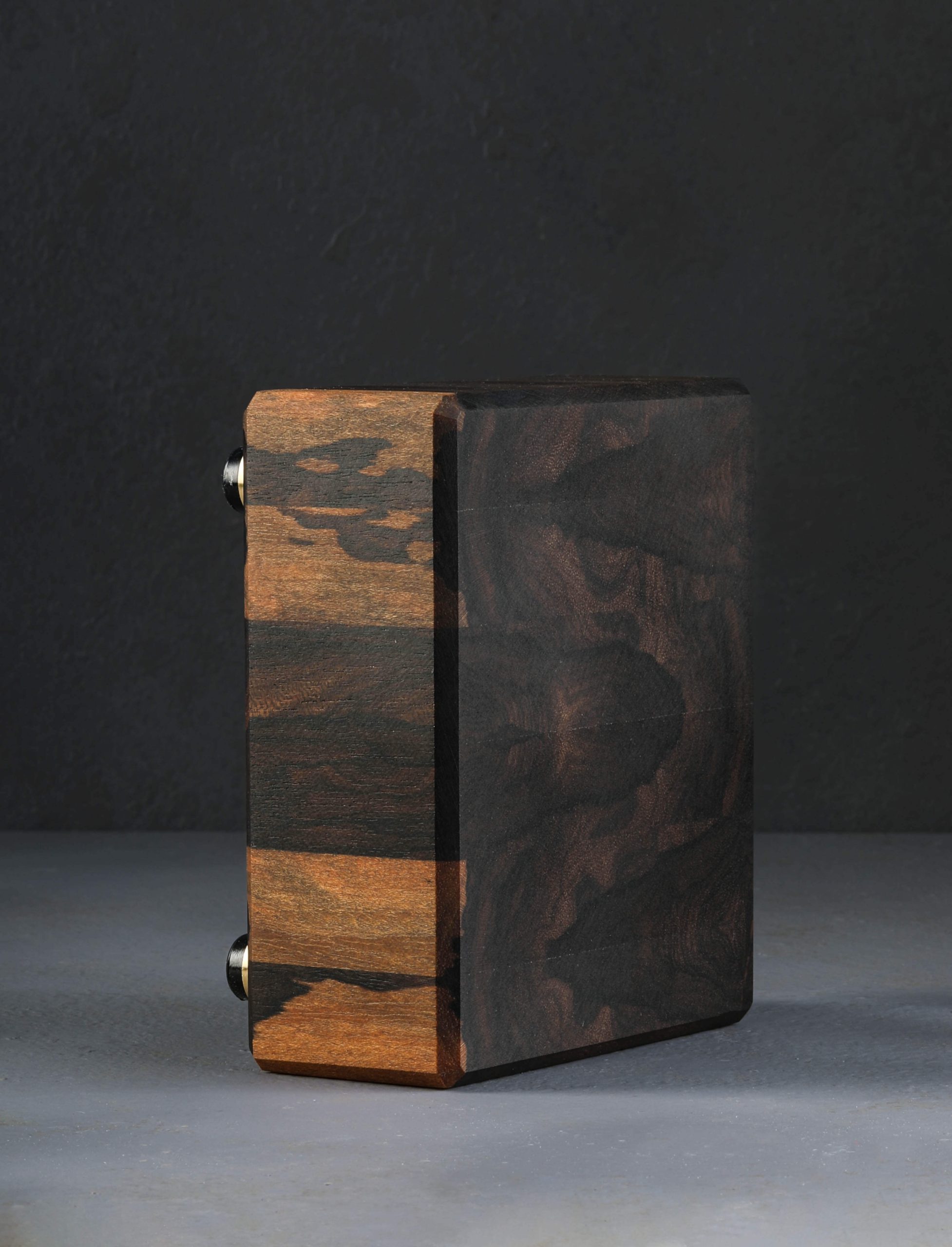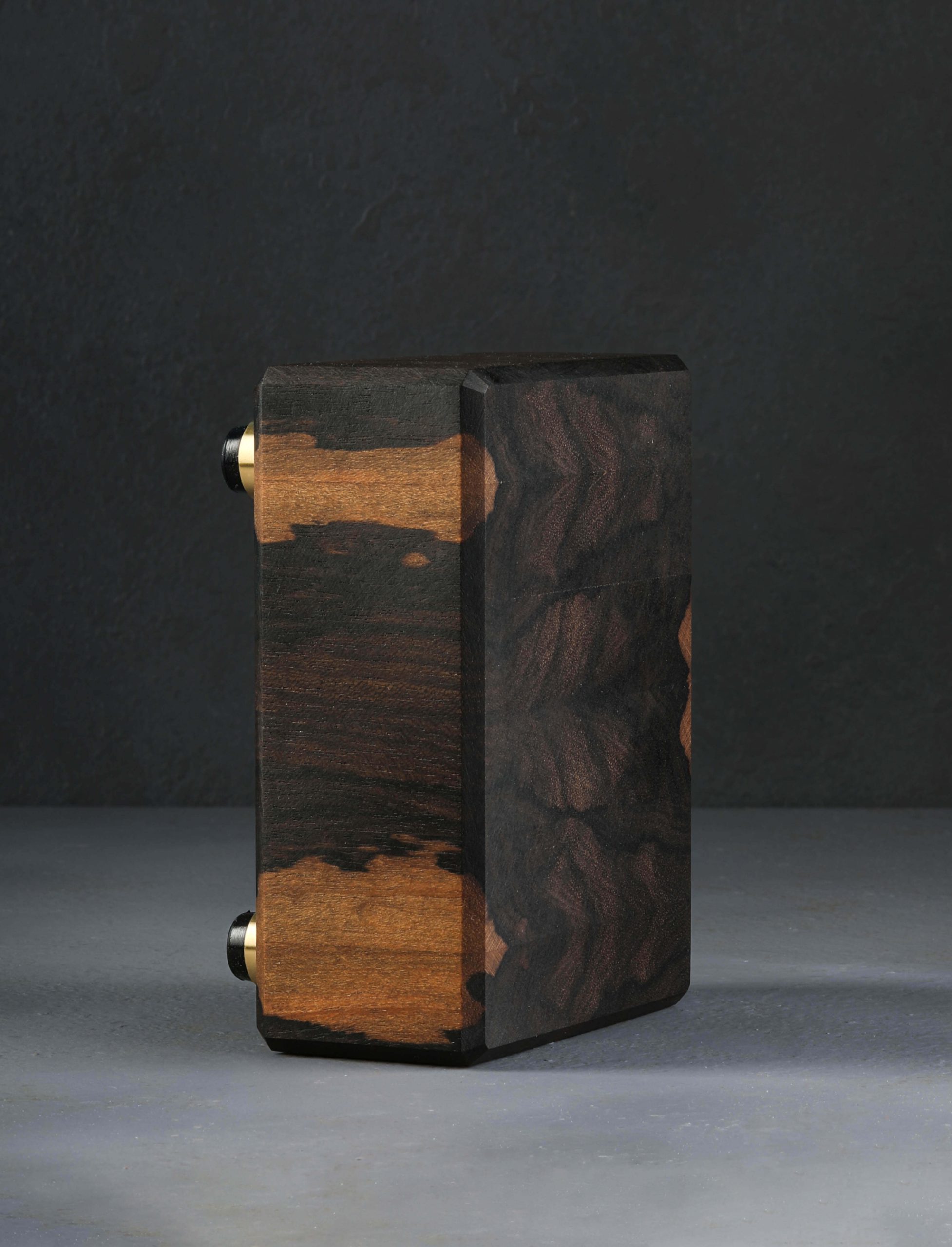 Crafted this time from rather stunning ziricote wood, a unique material with what is sometimes described as ‘spider-webbing’ or ‘landscape’ grain figure, come the two latest bar boards by Luke Martin. Artfully matched, end-grain cut pieces of this exotic hardwood, in which grain aligns just so, combine to form cutting surfaces perfect for any number of tasks for which space is at a premium. For citrus and accoutrements behind the bar; for garlic in the kitchen; for strawberries on the patio, and much more, the easy-to-clean, portable size and elegant beauty makes a statement wherever they go. The underside features premium silicon and stainless steel feet to ensure a level, non-slip experience.