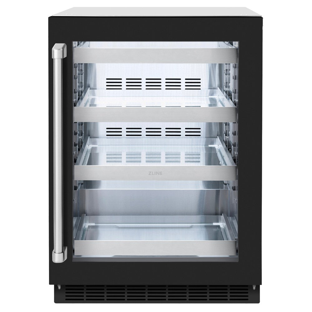 ZLINE 24 in. Touchstone 151 Can Beverage Fridge With Black Matte Glass Door (RBSO-BLM-24)