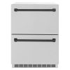ZLINE 24 in. Touchstone 168 Can Outdoor-Rated Dual Refrigerator Drawer with Black Stainless Steel Doors (RDSO-BS-24)