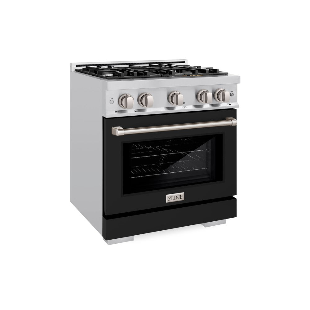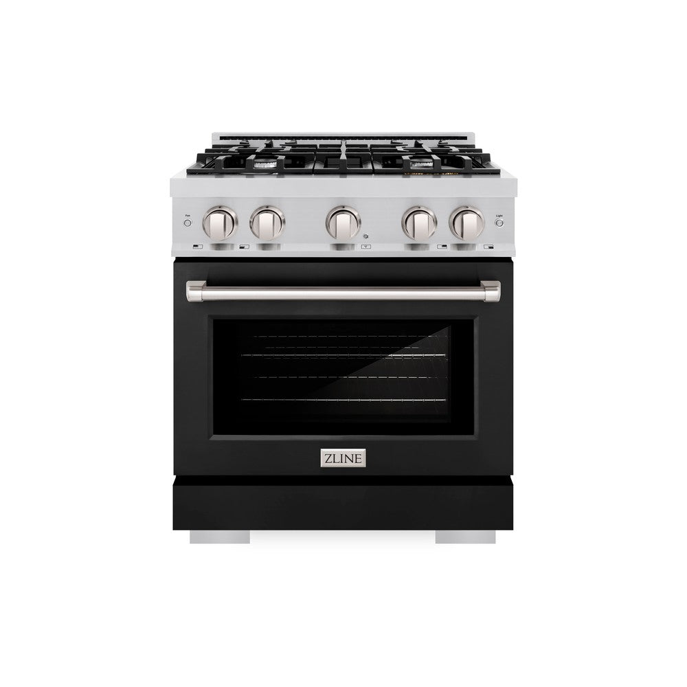 ZLINE 30 in. 4.2 cu. ft. Select Dual Fuel Range with 4 Burner Gas Cooktop and Electric Convection Oven in Stainless Steel with Black Matte Door (HDR-BLM-30)