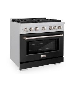 ZLINE 36 in. 5.2 cu. ft. Paramount Dual Fuel Range with 6 Burner Gas Cooktop and Electric Convection Oven in DuraSnow Stainless Steel with Black Matte Door (SDRS-BLM-36)