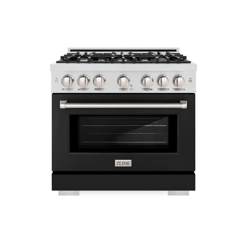 ZLINE 36 in. 5.2 cu. ft. Select Dual Fuel Range with 6 Burner Gas Cooktop and Electric Convection Oven in DuraSnow Stainless Steel with Black Matte Door (HDRS-BLM-36)