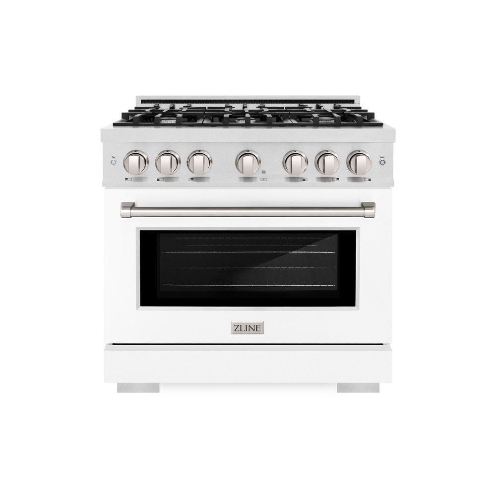ZLINE 36 in. 5.2 cu. ft. Select Gas Range with 6 Burner Cooktop and Convection Gas Oven in DuraSnow Stainless Steel with White Matte Door (HGRS-WM-36)