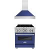 ZLINE 36 in. Kitchen Package with DuraSnow Stainless Steel Dual Fuel Range with Blue Matte Door and Convertible Vent Range Hood (2KP-RASBMRH36)