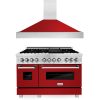 ZLINE 36 in. Kitchen Package with DuraSnow Stainless Steel Dual Fuel Range with Red Gloss Door and Convertible Vent Range Hood (2KP-RASRGRH36)