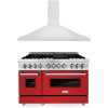 ZLINE 36 in. Kitchen Package with DuraSnow Stainless Steel Dual Fuel Range with Red Matte Door and Convertible Vent Range Hood (2KP-RARMRH36)