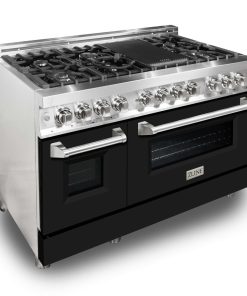 ZLINE 48 in. 6.0 cu. ft. Legacy Dual Fuel Range with 7 Burner Gas Cooktop and 2 Electric Ovens in Stainless Steel and Black Matte Doors (RA-BLM-48)