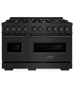 Luxury isn’t meant to be desired – it’s meant to be attainable. The ZLINE 48 in. 6.7 cu. ft. Classic Double Oven Dual Fuel Range in Black Stainless Steel with 8 Brass Burners (CDRB-BR-48) combines the elegance of a hand-finished porcelain gas cooktop with 8 Italian-made brass auto-reignition burners, a large electric convection oven with an energy-efficient cooling fan to ensure quiet operation, a small bake-and-broil oven, and Landscape oven door window designs allowing you to master every meal. With a modern, timeless style and refined functionality, ZLINE Classic Dual Fuel Ranges are masterfully crafted to deliver an elevated culinary experience.