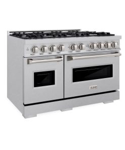 Luxury isn’t meant to be desired – it’s meant to be attainable. The ZLINE 48 in. 6.7 cu. ft. Classic Double Oven Gas Range with 8 Burner Cooktop in DuraSnow® Stainless Steel (CGRS-48) combines the elegance of a hand-finished porcelain gas cooktop with 8 Italian-made auto-reignition burners, a large gas convection oven with an energy-efficient cooling fan to ensure quiet operation, a small baking oven, and Landscape oven door window designs allowing you to master every meal. With a modern, timeless style and refined functionality, ZLINE Classic Gas Ranges are masterfully crafted to deliver an elevated culinary experience.