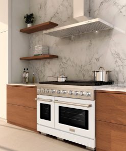 Luxury isn’t meant to be desired – it’s meant to be attainable. The ZLINE 48 in. 6.7 cu. ft. Paramount Double Oven Dual Fuel Range with 8 Burner Gas Cooktop in Stainless Steel with White Matte Doors (SDR-WM-48) combines the versatility of a gas cooktop with 8 Italian-made auto-reignition burners, a large high-performing electric convection oven and a small bake-and-broil oven with digital thermostat technology, enhanced cast iron grates, and beautiful white matte doors with Horizon window designs allowing you to master every meal. With a modern, timeless style and refined functionality, ZLINE Paramount Dual Fuel Ranges are masterfully crafted to deliver an elevated culinary experience.