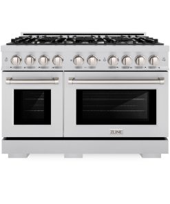 Luxury isn’t meant to be desired – it’s meant to be attainable. The ZLINE 48 in. 6.7 cu. ft. Select Double Oven Dual Fuel Range with 8 Burner Gas Cooktop in DuraSnow® Stainless Steel (HDRS-48) combines the elegance of a hand-finished porcelain gas cooktop with 8 Italian-made auto-reignition burners, a large electric convection oven with an energy-efficient cooling fan to ensure quiet operation, a small bake-and-broil oven, and Horizon oven door window designs allowing you to master every meal. With a modern, timeless style and refined functionality, ZLINE Select Dual Fuel Ranges are masterfully crafted to deliver an elevated culinary experience.