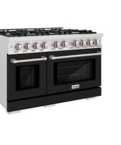 Luxury isn’t meant to be desired – it’s meant to be attainable. The ZLINE 48 in. 6.7 cu. ft. Select Double Oven Dual Fuel Range with 8 Burner Gas Cooktop in DuraSnow® Stainless Steel with Black Matte Doors (HDRS-BLM-48) combines the elegance of a hand-finished porcelain gas cooktop with 8 Italian-made auto-reignition burners, a large electric convection oven with an energy-efficient cooling fan to ensure quiet operation, a small bake-and-broil oven, and beautiful black matte doors with Horizon window designs allowing you to master every meal. With a modern, timeless style and refined functionality, ZLINE Select Dual Fuel Ranges are masterfully crafted to deliver an elevated culinary experience.