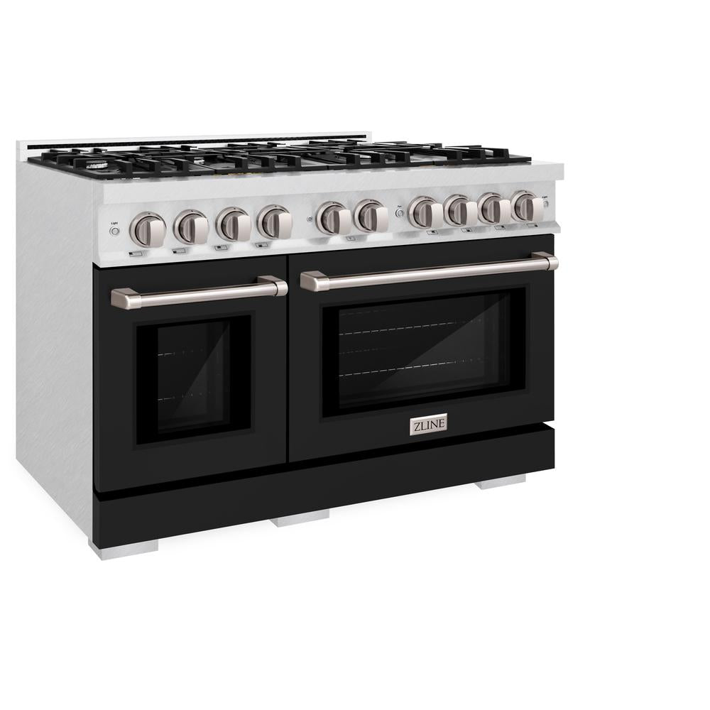 ZLINE 48 in. 6.7 cu. ft. Select Double Oven Dual Fuel Range with 8 Burner Gas Cooktop in DuraSnow Stainless Steel with Black Matte Doors (HDRS-BLM-48)