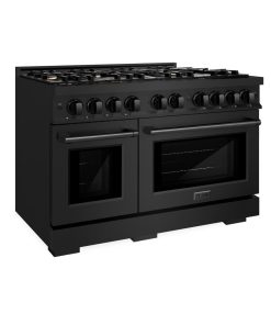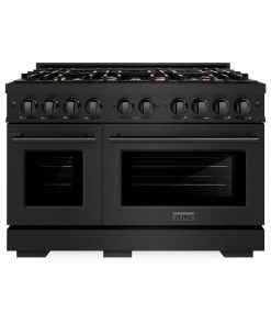 ZLINE 48 in. 6.7 cu. ft. Select Double Oven Gas Range in Black Stainless Steel with 8 Brass Burners (HGRB-BR-48)