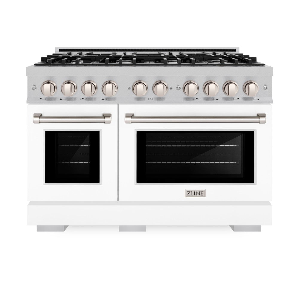 ZLINE 48 in. 6.7 cu. ft. Select Double Oven Gas Range with 8 Burner Cooktop in DuraSnow Stainless Steel with White Matte Doors (HGRS-WM-48)