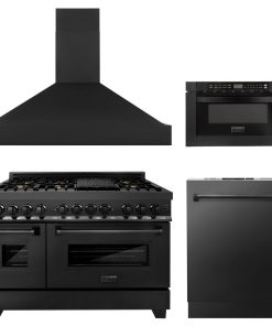 ZLINE 48 in. Kitchen Package with Black Stainless Steel Dual Fuel Range, Range Hood, Microwave Drawer and Dishwasher (4KP-RABRH48-MWDW)