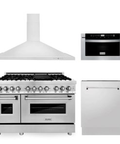 ZLINE 48 in. Kitchen Package with Stainless Steel Dual Fuel Range, Range Hood, Microwave Drawer and Tall Tub Dishwasher (4KP-RARH48-MWDWV)