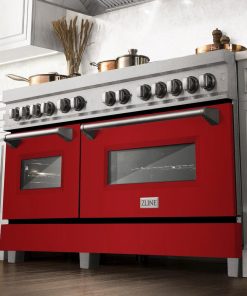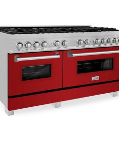 Luxury isn’t meant to be desired – it’s meant to be attainable. The ZLINE 60 in. 7.4 cu. ft. Legacy Dual Fuel Range with 9 Burner Gas Cooktop and 2 Electric Convection Ovens in DuraSnow® Stainless Steel and Red Gloss Doors (RAS-RG-60) pairs a powerful gas cooktop with 9 Italian-crafted burners, dual electric convection ovens, and beautiful red gloss doors with Landscape window designs. With innovative features designed to enhance your kitchen’s capability, ZLINE Legacy Dual Fuel Ranges provide a professional culinary experience by pairing unmatched performance with timeless style.