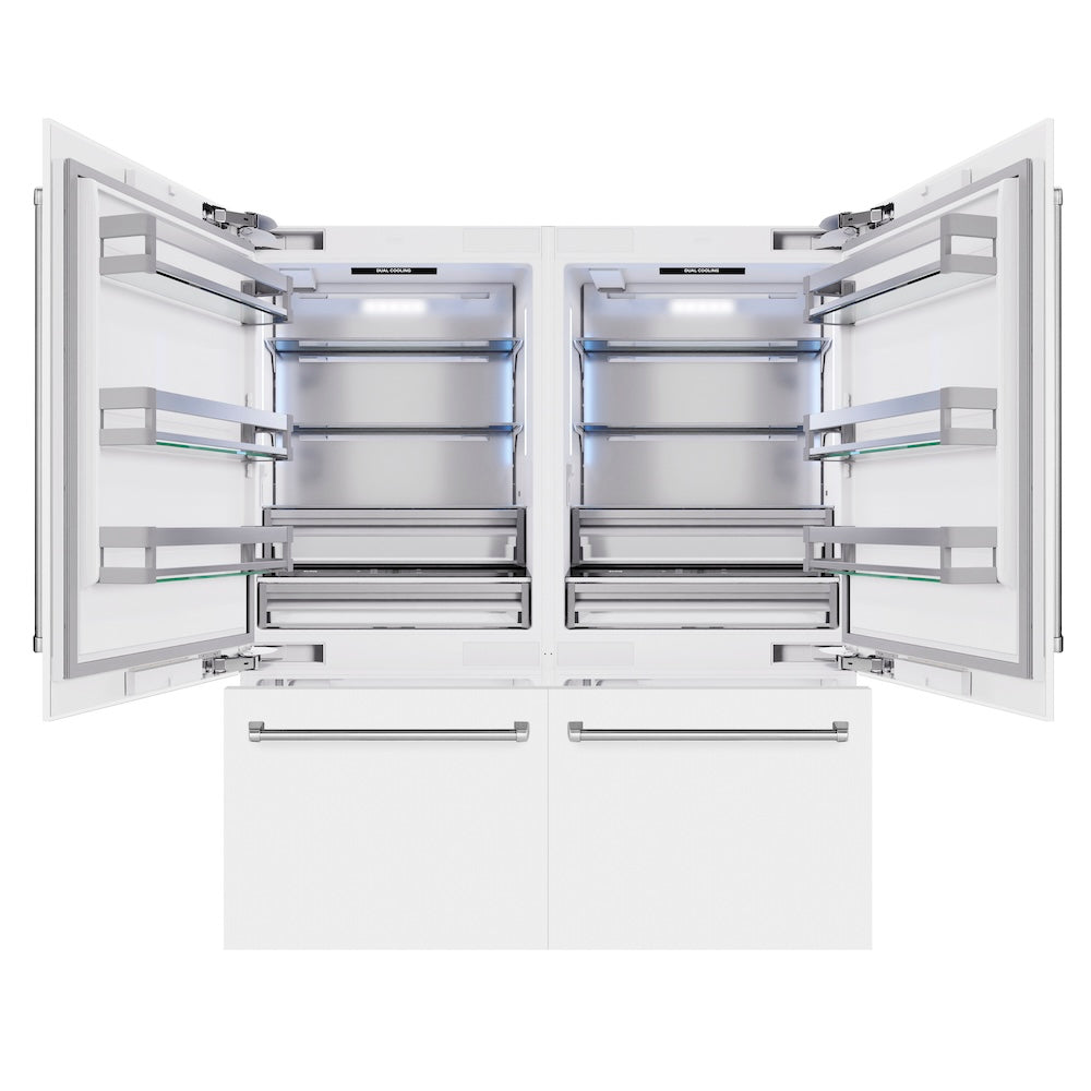 ZLINE 72 in. 39.6 cu. ft. French Door Built-In Bottom Freezer Refrigerator with Water Dispensers and Ice Makers in White Matte (RBIT-WM-72)