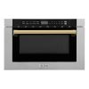 ZLINE Autograph Edition 24 in. 1.2 cu. ft. Built-in Microwave Drawer with a Traditional Handle in Stainless Steel and Polished Gold Accents (MWDZ-1-H-G)