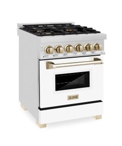 Luxury isn’t meant to be desired – it’s meant to be attainable. The ZLINE Autograph Edition 24 in. 2.8 cu. ft. Legacy Dual Fuel Range with 4 Burner Gas Cooktop and Electric Convection Oven in Stainless Steel with White Matte Door and Polished Gold Accents (RAZ-WM-24-G) pairs a powerful gas cooktop with 4 Italian-crafted burners, an electric convection oven, a beautiful white matte door with a Landscape window design, and elegant polished gold knobs and handle. With innovative features designed to enhance your kitchen’s capability, ZLINE Legacy Dual Fuel Ranges provide a professional culinary experience by pairing unmatched performance with timeless style.