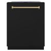 ZLINE Autograph Edition 24 in. Monument Series 3rd Rack Top Touch Control Tall Tub Dishwasher in Black Matte with Polished Gold Handle, 45dBa (DWMTZ-BLM-24-G)