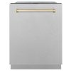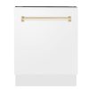 ZLINE Autograph Edition 24 in. Monument Series 3rd Rack Top Touch Control Tall Tub Dishwasher in White Matte with Polished Gold Accent Handle, 45dBa (DWMTZ-WM-24-G)