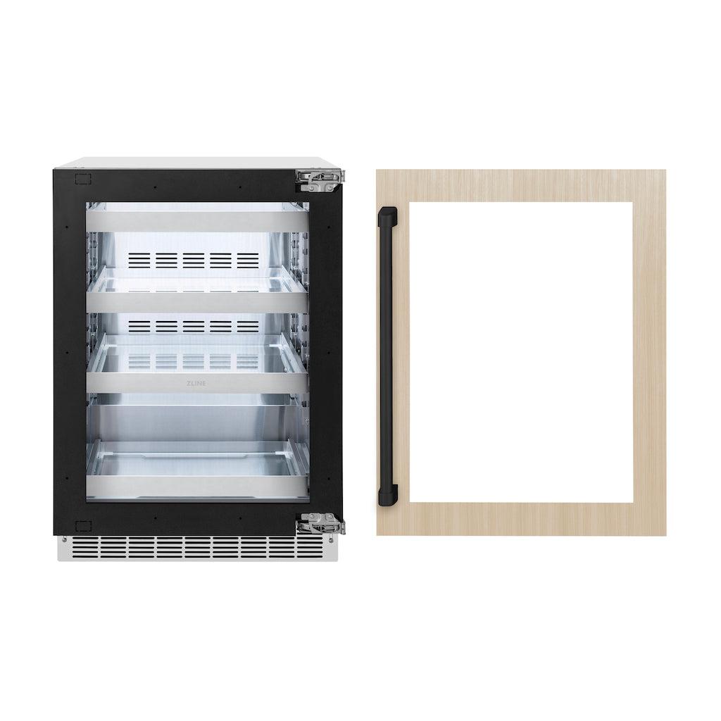 ZLINE Autograph Edition 24 in. Touchstone 151 Can Beverage Fridge With Panel Ready Glass Door And Matte Black Handle (RBSPOZ-24-MB)