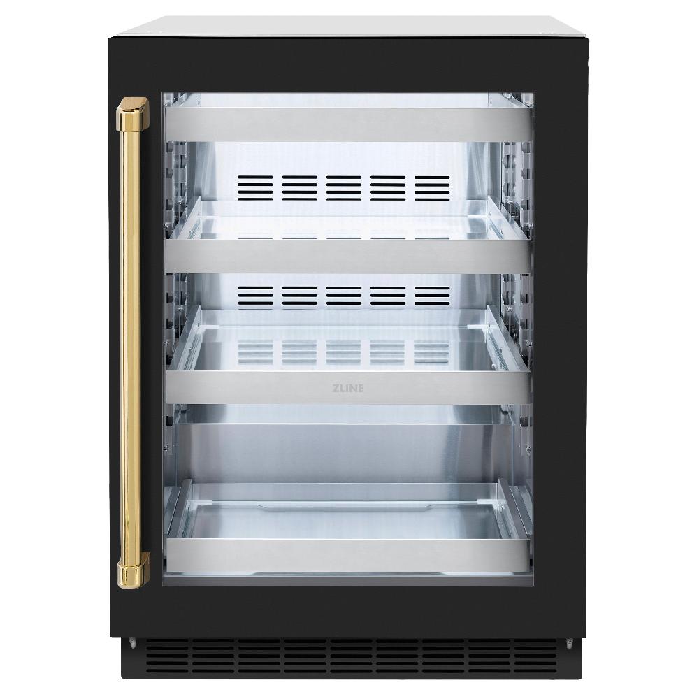 ZLINE Autograph Edition 24 in. Touchstone Dual Zone 44 Bottle Wine Cooler With Black Matte Glass Door And Polished Gold Handle (RWDOZ-BLM-24-G)