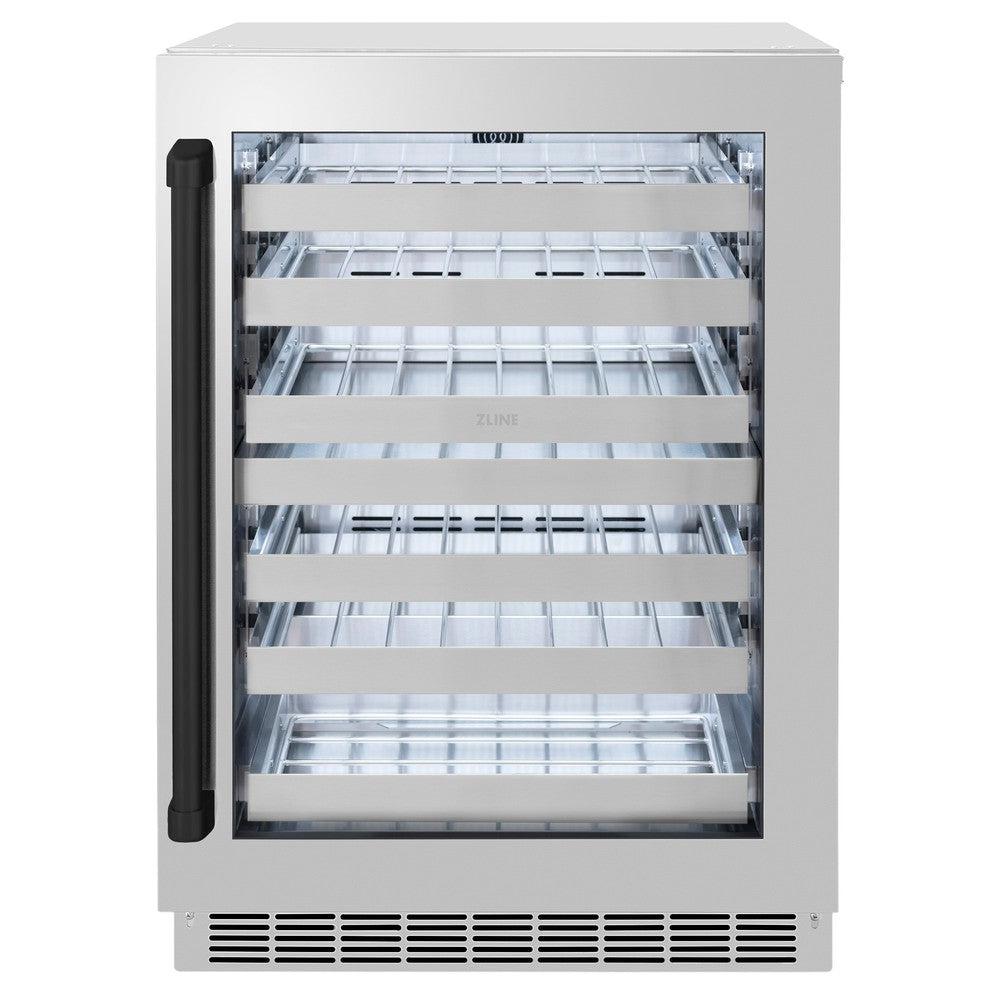 ZLINE Autograph Edition 24 in. Touchstone Dual Zone 44 Bottle Wine Cooler With Stainless Steel Glass Door And Matte Black Handle (RWDOZ-GS-24-MB)