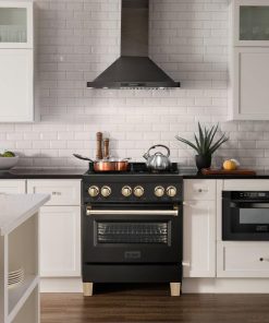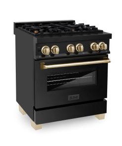 Luxury isn’t meant to be desired – it’s meant to be attainable. The ZLINE Autograph Edition 30 in. 4.0 cu. ft. Legacy Dual Fuel Range with 4 Burner Gas Cooktop and Electric Convection Oven in Black Stainless Steel and Polished Gold Accents (RABZ-30-G) pairs a powerful gas cooktop with 4 Italian-crafted burners, an electric convection oven with a Landscape oven door window design, and elegant polished gold knobs and handle. With innovative features designed to enhance your kitchen’s capability, ZLINE Legacy Dual Fuel Ranges provide a professional culinary experience by pairing unmatched performance with timeless style.