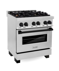 ZLINE Autograph Edition 30 in. 4.0 cu. ft. Legacy Dual Fuel Range with 4 Burner Gas Cooktop and Electric Convection Oven in Stainless Steel and Matte Black Accents (RAZ-30-MB)