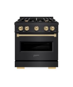 Luxury isn’t meant to be desired – it’s meant to be attainable. The ZLINE Autograph Edition 30 in. 4.2 cu. ft. Classic Dual Fuel Range with 4 Burner Gas Cooktop and Electric Convection Oven in Black Stainless Steel with Champagne Bronze Accents (CDRBZ-30-CB) combines the elegance of a hand-finished porcelain gas cooktop with 4 Italian-made auto-reignition burners, an electric convection oven with an energy-efficient cooling fan to ensure quiet operation, a Landscape oven door window design, and stunning champagne bronze knobs and handle allowing you to master every meal. With a modern, timeless style and refined functionality, ZLINE Classic Dual Fuel Ranges are masterfully crafted to deliver an elevated culinary experience.