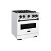 ZLINE Autograph Edition 30 in. 4.2 cu. ft. Classic Dual Fuel Range with 4 Burner Gas Cooktop and Electric Convection Oven in DuraSnow Stainless Steel with White Matte Door and Polished Gold Accents (CDRSZ-WM-30-G)