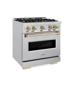 Luxury isn’t meant to be desired – it’s meant to be attainable. The ZLINE Autograph Edition 30 in. 4.2 cu. ft. Classic Dual Fuel Range with 4 Burner Gas Cooktop and Electric Convection Oven in Stainless Steel with Champagne Bronze Accents (CDRZ-30-CB) combines the elegance of a hand-finished porcelain gas cooktop with 4 Italian-made auto-reignition burners, an electric convection oven with an energy-efficient cooling fan to ensure quiet operation, a Landscape oven door window design, and stunning champagne bronze knobs and handle allowing you to master every meal. With a modern, timeless style and refined functionality, ZLINE Classic Dual Fuel Ranges are masterfully crafted to deliver an elevated culinary experience.