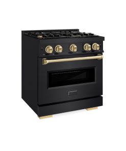 ZLINE Autograph Edition 30 in. 4.2 cu. ft. Classic Gas Range with 4 Burner Cooktop and Convection Gas Oven in Black Stainless Steel and Champagne Bronze Accents (CGRBZ-30-CB)