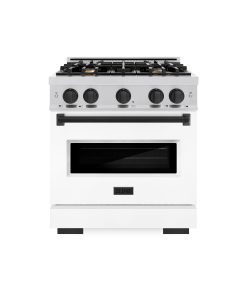 ZLINE Autograph Edition 30 in. 4.2 cu. ft. Classic Gas Range with 4 Burner Cooktop and Convection Gas Oven in Stainless Steel with White Matte Door and Matte Black Accents (CGRZ-WM-30-MB)