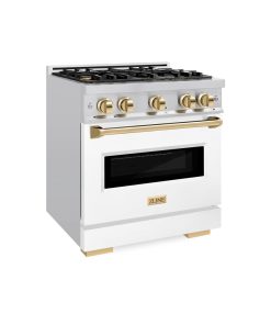Luxury isn’t meant to be desired – it’s meant to be attainable. The ZLINE Autograph Edition 30 in. 4.2 cu. ft. Classic Gas Range with 4 Burner Cooktop and Convection Gas Oven in Stainless Steel with White Matte Door and Polished Gold Accents (CGRZ-WM-30-G) combines the elegance of a hand-finished porcelain gas cooktop with 4 Italian-made auto-reignition burners, a gas convection oven with an energy-efficient cooling fan to ensure quiet operation, a beautiful white matte door with a Landscape window design, and stunning polished gold knobs and handle allowing you to master every meal. With a modern, timeless style and refined functionality, ZLINE Classic Gas Ranges are masterfully crafted to deliver an elevated culinary experience.
