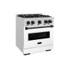 ZLINE Autograph Edition 30 in. 4.2 cu. ft. Classic Gas Range with 4 Burner Cooktop and Convection Gas Oven in Stainless Steel with White Matte Door and Polished Gold Accents (CGRZ-WM-30-G)
