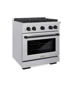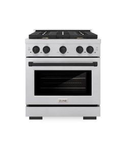 ZLINE Autograph Edition 30 in. 4.2 cu. ft. Paramount Dual Fuel Range with 4 Burner Gas Cooktop and Electric Convection Oven in DuraSnow Stainless Steel with Matte Black Accents (SDRSZ-30-MB)