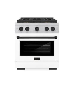 Luxury isn’t meant to be desired – it’s meant to be attainable. The ZLINE Autograph Edition 30 in. 4.2 cu. ft. Paramount Dual Fuel Range with 4 Burner Gas Cooktop and Electric Convection Oven in DuraSnow® Stainless Steel with White Matte Door and Matte Black Accents (SDRSZ-WM-30-MB) combines the versatility of a gas cooktop with 4 Italian-made auto-reignition burners, an electric convection oven with digital thermostat technology, enhanced cast iron grates, a beautiful white matte door with a Horizon window design, and elegant matte black knobs and handle allowing you to master every meal. With a modern, timeless style and refined functionality, ZLINE Paramount Dual Fuel Ranges are masterfully crafted to deliver an elevated culinary experience.