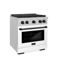 ZLINE Autograph Edition 30 in. 4.2 cu. ft. Paramount Dual Fuel Range with 4 Burner Gas Cooktop and Electric Convection Oven in DuraSnow Stainless Steel with White Matte Door and Matte Black Accents (SDRSZ-WM-30-MB)