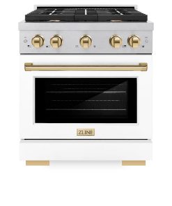 ZLINE Autograph Edition 30 in. 4.2 cu. ft. Paramount Dual Fuel Range with 4 Burner Gas Cooktop and Electric Convection Oven in DuraSnow Stainless Steel with White Matte Door and Polished Gold Accents (SDRSZ-WM-30-G)