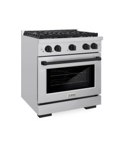ZLINE Autograph Edition 30 in. 4.2 cu. ft. Paramount Dual Fuel Range with 4 Burner Gas Cooktop and Electric Convection Oven in Stainless Steel with Matte Black Accents (SDRZ-30-MB)
