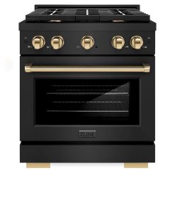 Luxury isn’t meant to be desired – it’s meant to be attainable. The ZLINE Autograph Edition 30 in. 4.2 cu. ft. Paramount Gas Range with 4 Burner Cooktop and Convection Gas Oven in Black Stainless Steel and Champagne Bronze Accents (SGRBZ-30-CB) features a versatile gas cooktop with 4 Italian-made auto-reignition burners, a high-performing gas convection oven, enhanced cast iron grates, a Horizon oven door window design, and elegant champagne bronze knobs and handle allowing you to master every meal. With a modern, timeless style and refined functionality, ZLINE Paramount Gas Ranges are masterfully crafted to deliver an elevated culinary experience.