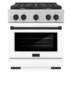 ZLINE Autograph Edition 30 in. 4.2 cu. ft. Paramount Gas Range with 4 Burner Cooktop and Convection Gas Oven in DuraSnow Stainless Steel with White Matte Door and Matte Black Accents (SGRSZ-WM-30-MB)