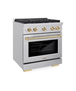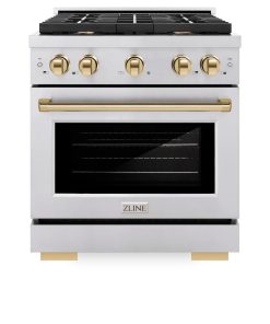 Luxury isn’t meant to be desired – it’s meant to be attainable. The ZLINE Autograph Edition 30 in. 4.2 cu. ft. Paramount Gas Range with 4 Burner Cooktop and Convection Gas Oven in Stainless Steel and Polished Gold Accents (SGRZ-30-G) features a versatile gas cooktop with 4 Italian-made auto-reignition burners, a high-performing gas convection oven, enhanced cast iron grates, a Horizon oven door window design, and elegant polished gold knobs and handle allowing you to master every meal. With a modern, timeless style and refined functionality, ZLINE Paramount Gas Ranges are masterfully crafted to deliver an elevated culinary experience.