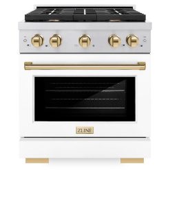 Luxury isn’t meant to be desired – it’s meant to be attainable. The ZLINE Autograph Edition 30 in. 4.2 cu. ft. Paramount Gas Range with 4 Burner Cooktop and Convection Gas Oven in Stainless Steel with White Matte Door and Polished Gold Accents (SGRZ-WM-30-G) features a versatile gas cooktop with 4 Italian-made auto-reignition burners, a high-performing gas convection oven, enhanced cast iron grates, a beautiful white matte door with a Horizon window design, and elegant polished gold knobs and handle allowing you to master every meal. With a modern, timeless style and refined functionality, ZLINE Paramount Gas Ranges are masterfully crafted to deliver an elevated culinary experience.